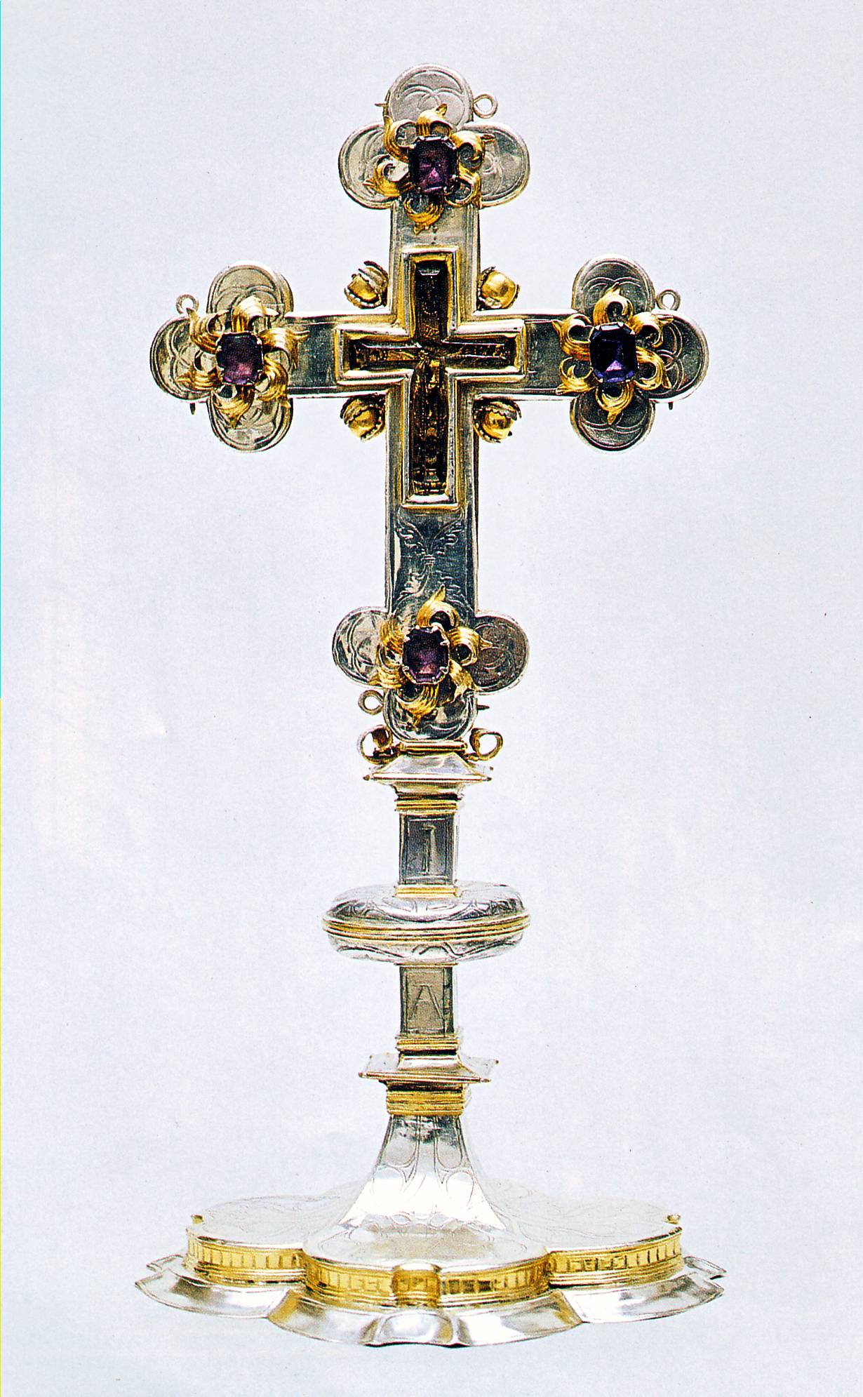 Nach der Schenkung des Pektorale an Maria Ramersdorf fügte man es in ein 31,5 × 15,5 cm großes, bis heute genutztes Standkreuz aus Silber ein, um die öffentliche Verehrung des Kreuzreliquiars zu vereinfachen. Im Zentrum der Vorderseite des Standkreuzes befindet sich ein kreuzförmiges Sichtfenster aus geschliffenem Bergkristall, das den Blick auf das dahinterliegende Brustkreuz freigibt. An den vier Enden des Standkreuzes verweist je ein Amethyst in vergoldeter Rosenblütenrahmung auf die heilsamen Wundmale Jesu. Die eingravierten Ornamente auf der Rückseite zeigen erneut die Symbole der Evangelisten.